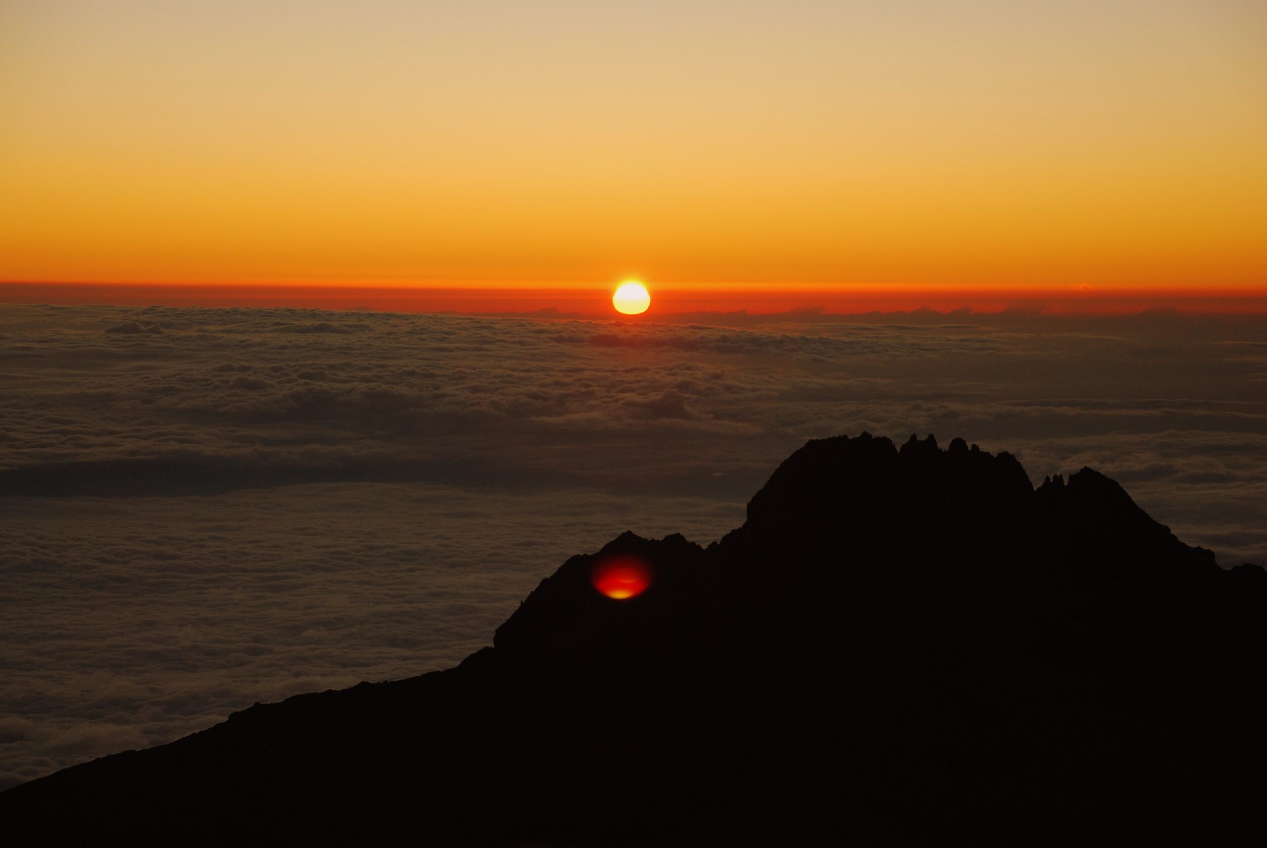 Atak szczytowy rozpoczęliśmy o 23:00,wtemperaturze -10C. Po 2 – 3 godzinach wędrówki w górę zaczęliśmy dotkliwiej odczuwać wysokość. Kolejne 4 – 5 godzin było przed nami. Powietrze było lodowate, każdy krok walką. W Stela Point na wysokości 5756 m n.p.m. zauważyliśmy, że nie wszyscy docierają tak wysoko w pełni świadomie. Niektórzy rezygnowali z powodów choroby wysokościowej. Doświadczyliśmy niezwykłych wrażeń. Z jednej strony mistyczny wręcz wschód słońca okrywający swoimi promieniami mieniące się kolory lodowca. Z drugiej stroni niestety „zachód” euforii tych, z którymi od paru godzin dzieliliśmy wspólnie drogę na Kili, a którzy poddali się, będąc już właściwie na mecie. My szliśmy dalej, mając już za sobą wschód słońca. Około 6:45 osiągnęliśmy dach Afryki, stając na wysokości 5895 m n.p.m. UHURU PEAK – nasz cel wciąż otoczony był lodowcem. Czekało nasz jeszcze zejście z noclegiem w Mweka Camp na wysokości 3100 m n.p.m. Dotarliśmy tu ok 17:00 po 18 godzinach wysiłku. Rano, po śniadaniu już tylko 10 km lasu deszczowego i finał w postaci pamiątkowego dyplomu.